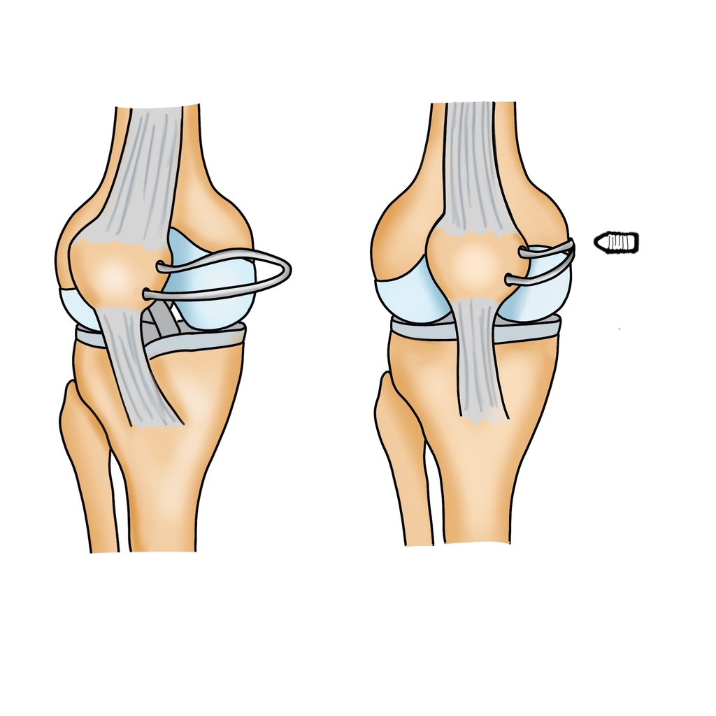 Se utilizează o grefă autologă (de obicei tendon gracilis sau semitendinos), recoltată din partea internă a genunchiului.