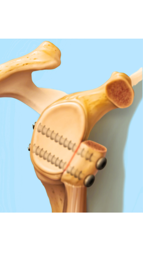 - Stabilizare osoasă: fragmentul coracoidian mărește suprafața glenei, creând o barieră naturală care împiedică ieșirea capului humeral din articulație.
